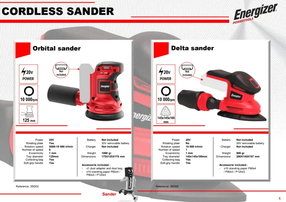 Finisaje perfecte, fara efort – Energizer 20V Excentric Sander 3SD02 este partenerul ideal pentru orice atelier sau proiect de renovare. Adauga-l in cos si transforma suprafetele in opere de arta!