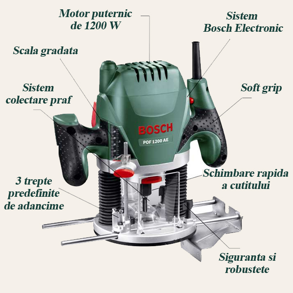 Caracteristici tehnice masina de frezat Bosch POF 1200 AE: