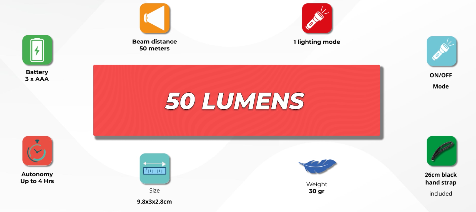 Cantarind doar 30 de grame, este usor de utilizat atat de tineri, cat si de varstnici. Este excelent pentru a ilumina chiar si cele mai inaccesibile si inguste colturi. In plus, are o carcasa rezistenta si este prevazuta cu un cablu de 26 cm, astfel incat nu o veti pierde niciodata.