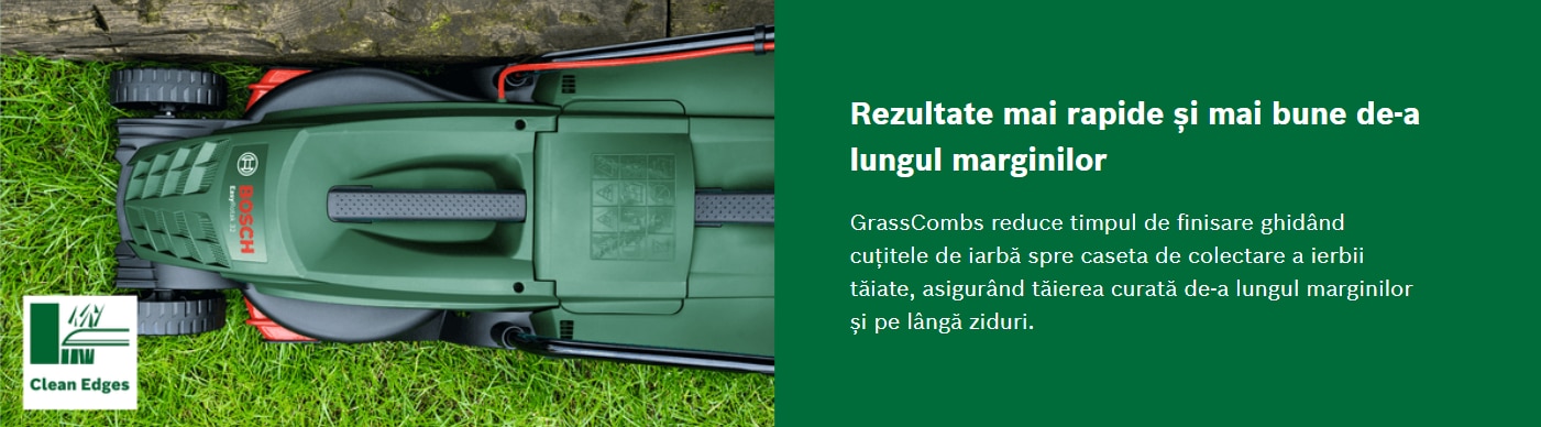 Aceasta masina de tuns iarba compacta, usor de manevrat, tunde gazoanele la perfectie. Motorul eficient din punct de vedere energetic asigura performante de taiere fiabile, chiar si in situatii dificile, cum ar fi pe suprafete inclinate sau pe teren accidentat. Datorita GrassCombs, UniversalRotak 34 taie automat marginile, lasand un aspect curat de-a lungul straturilor de flori si al gardurilor. Manerele Ergoflex ofera o pozitie a corpului sanatoasa si confortabila in timp ce lucrezi. Este adecvata pentru tunderea uniforma a gazoanelor si taierea ordonata a marginilor. Petrece mai putin timp golind iarba taiata datorita casetei de colectare a ierbii de 40 de litri.